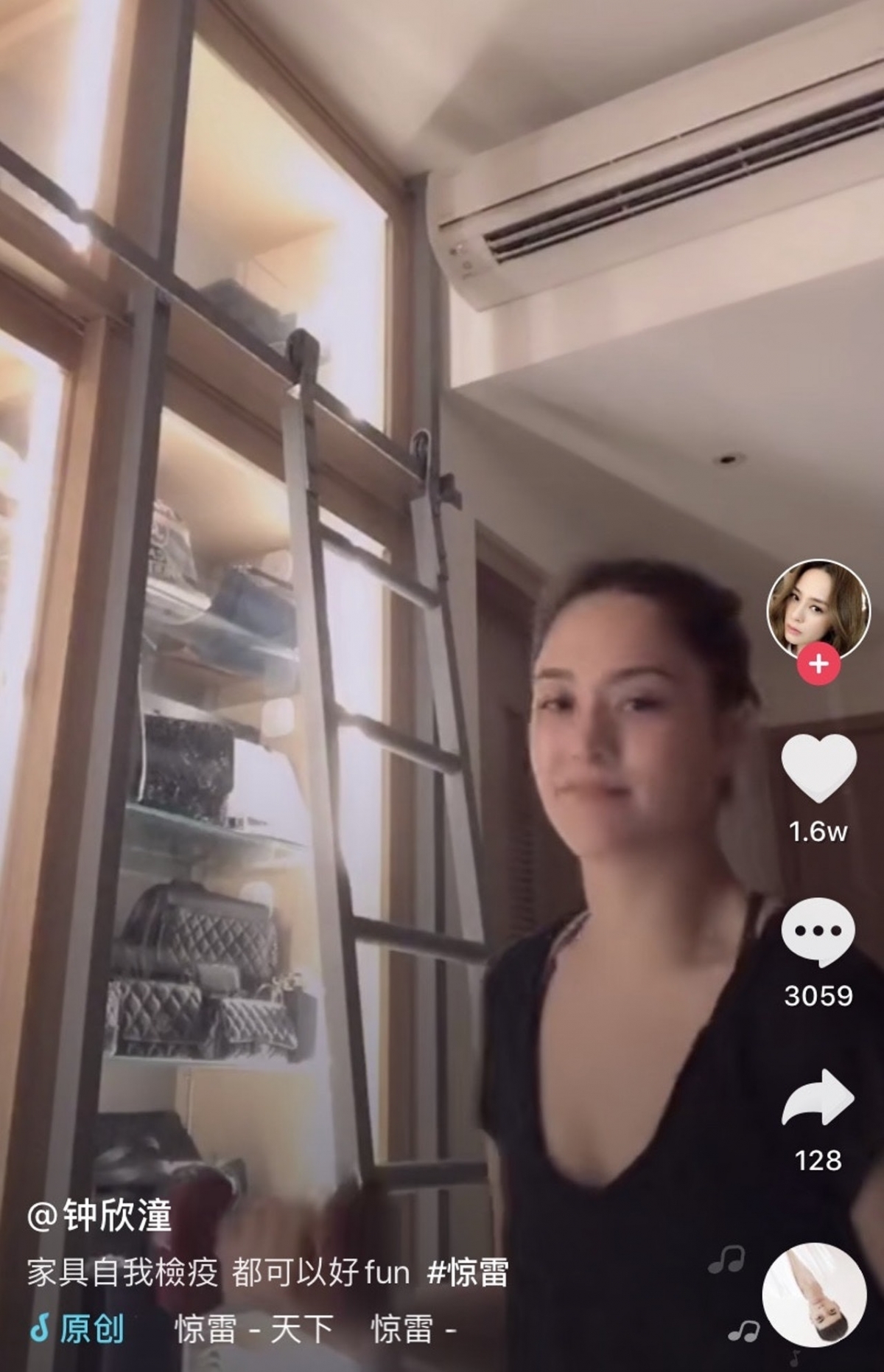 鍾欣潼(阿嬌)是一個「手袋控」,因疫情關係,阿嬌每次返港時就需要留在家中進行14天的家居隔離,阿嬌更好好善用時間,在家中努力做運動修身,更拍下了一段家中舉啞鈴的小影片分享到抖音。不過當時網民就被阿嬌身後5層高的名牌櫃所吸引,旁邊還備置有梯子好讓她能爬上拿到櫃頂的珍藏。