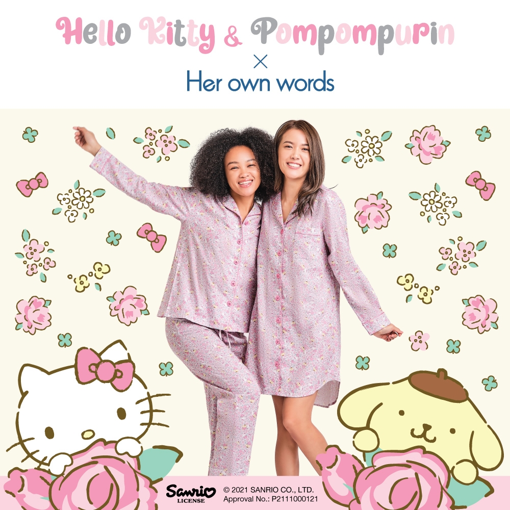 甜美可愛感UP!Her own words Hello Kitty & Pompompurin(布甸狗)內衣+睡衣聯乘系列,女生貼心親密之選~