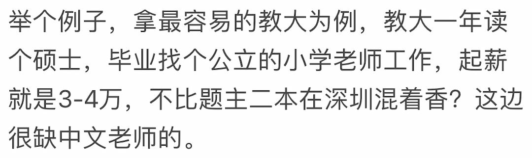 除了因為上述的原因而不建議樓主找港男,「阿姨」又指出很多內地女生在港畢業後容易有高收入,例如「拿最容易的教大(教育大學)為例」,讀完一年碩士後再做公立小學老師,起薪點已經是3、4萬,比起很多港男的收入高出了不少。
