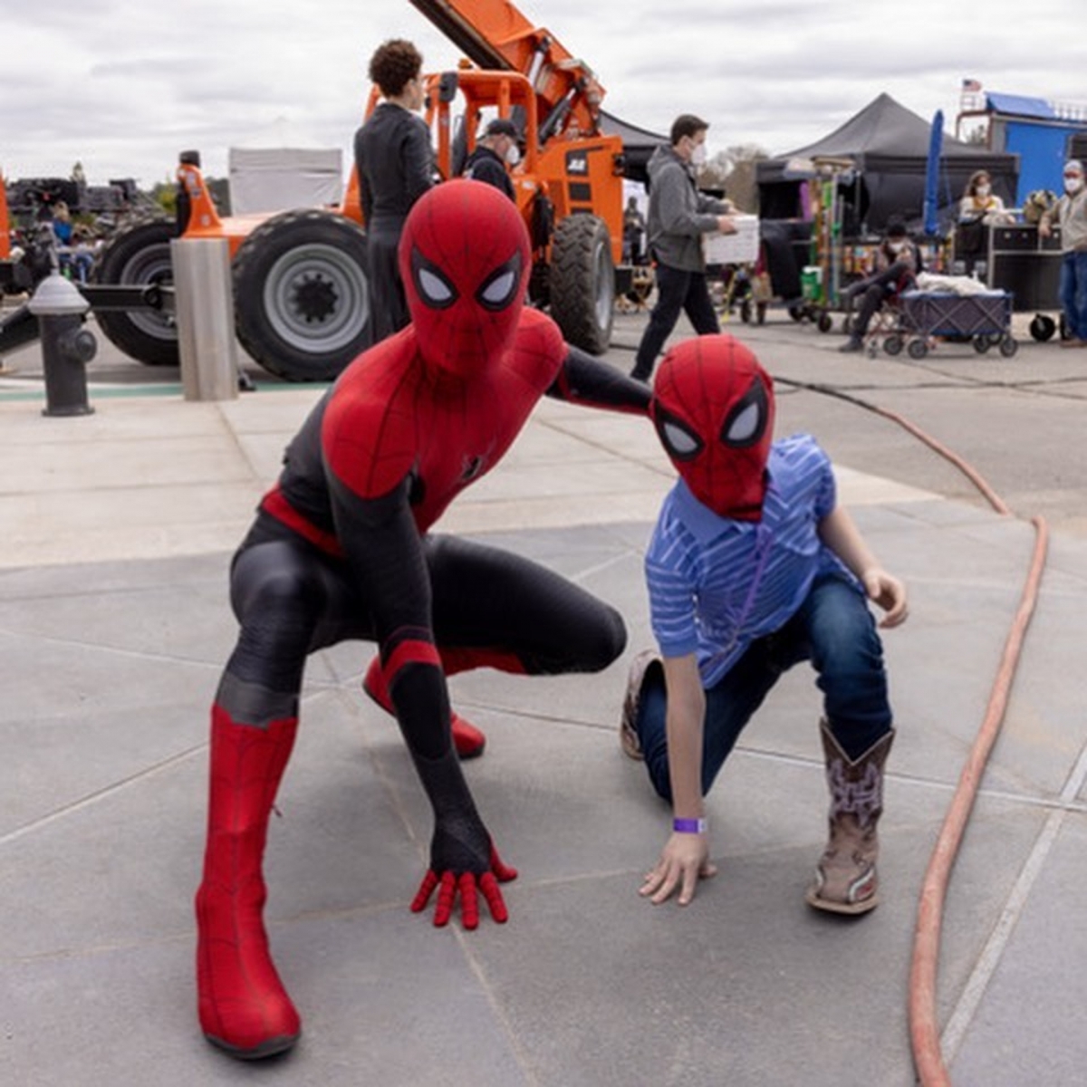 但最驚喜的是當時「蜘蛛俠」Tom Holland不但直接與小男孩進行視訊通話,更答應邀請他到《蜘蛛俠:不戰無歸》的拍攝現場參觀。原來Tom Holland已經偷偷地兌現了對男孩的承諾,近日Bridger Walker的爸爸Robert Walker就在社交網站分享了一家人與Tom Holland及Zendaya在片場的照片,並感謝他們令到兒子的夢想成真。