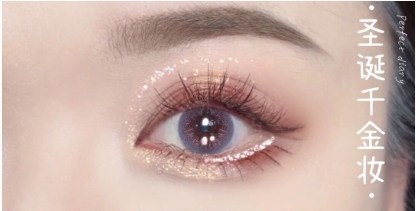之前「千金妝容」也是掀起過一段熱潮,襯聖誕節也可以嘗試千金眼妝!以淺米色為打底,眼瞼中央和下眼角則用紅棕色暈染一下,可用棕色再加深眼尾,最後揀選金色珠光帶閃片的眼影來提亮,眼妝立即變得閃閃發光又有高貴感~