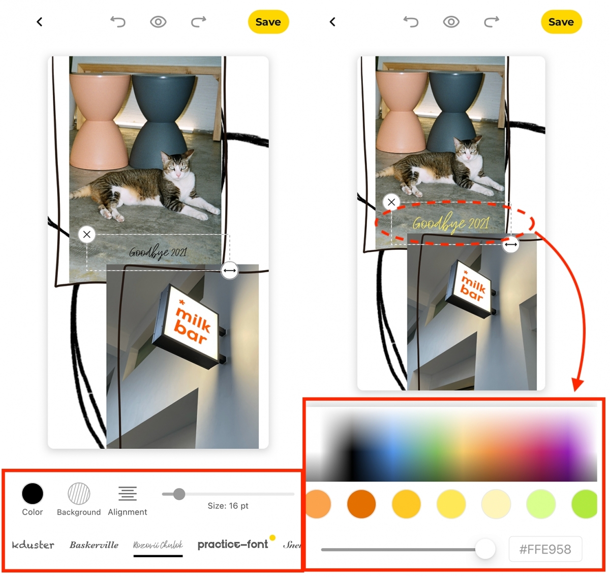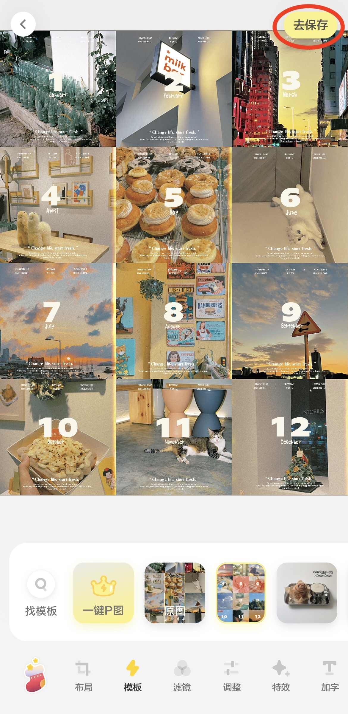 最後,相片成品便完成~按「去保存」,頁面會彈至分享頁,再按左下角「保存至相簿」便會把圖片儲存在你的手機相簿了~