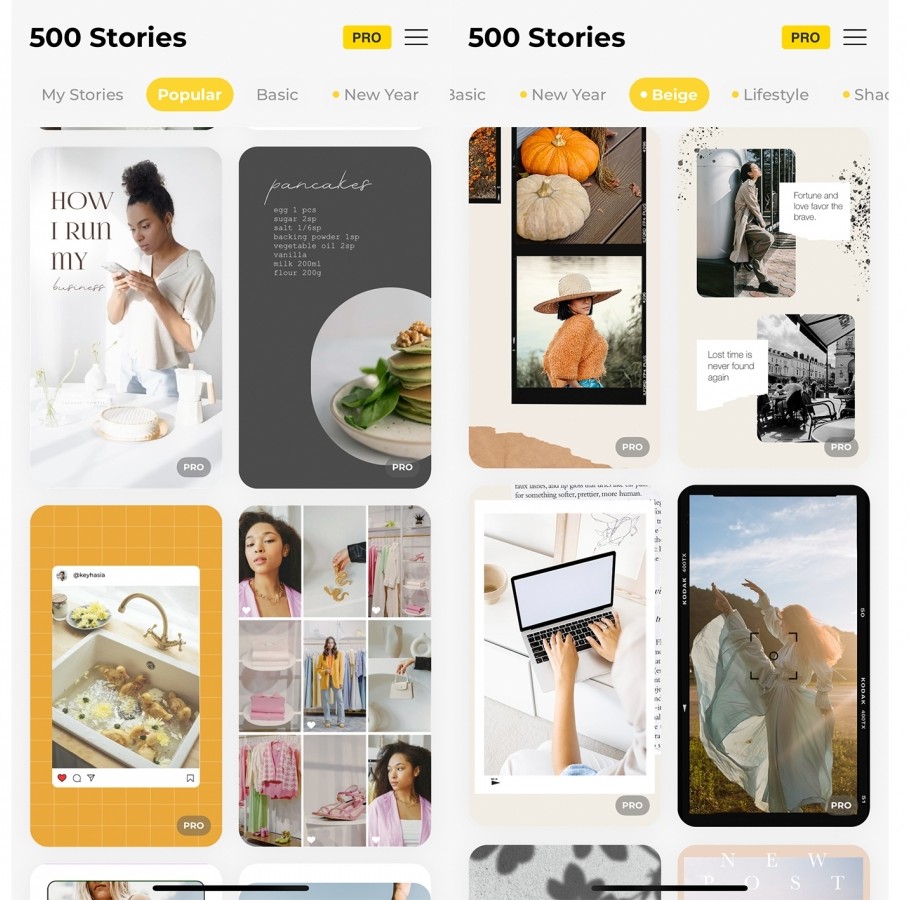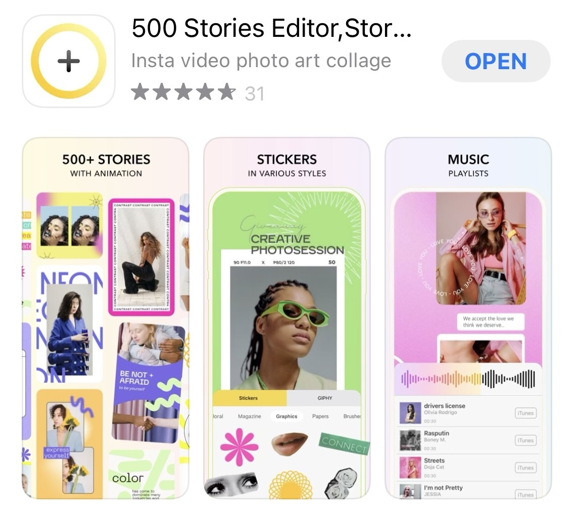 最後一個APP也是免費,主要以拼貼風格為主,一樣有提供不同的Stories模板~不過大部分都需要購買PRO才可使用。