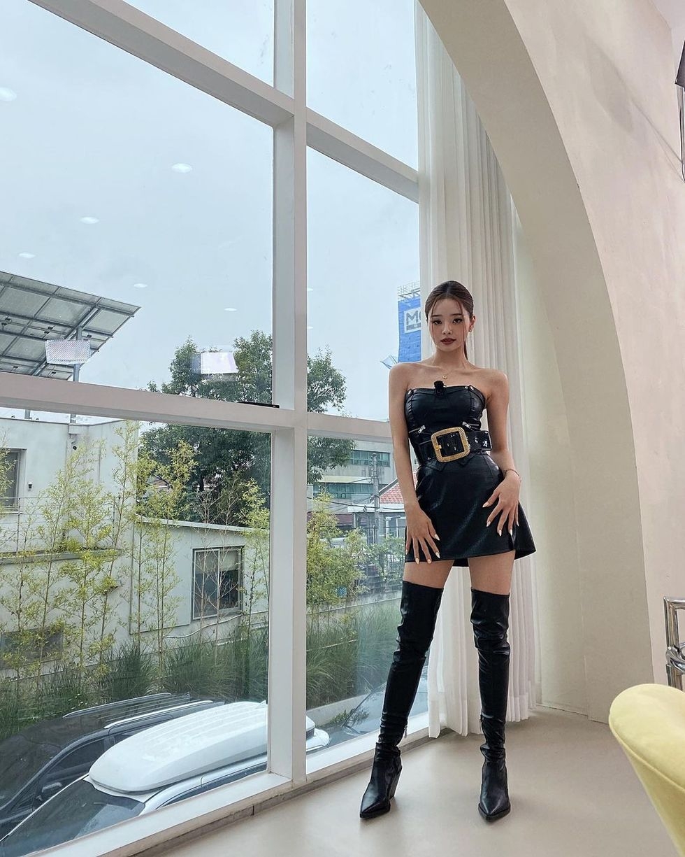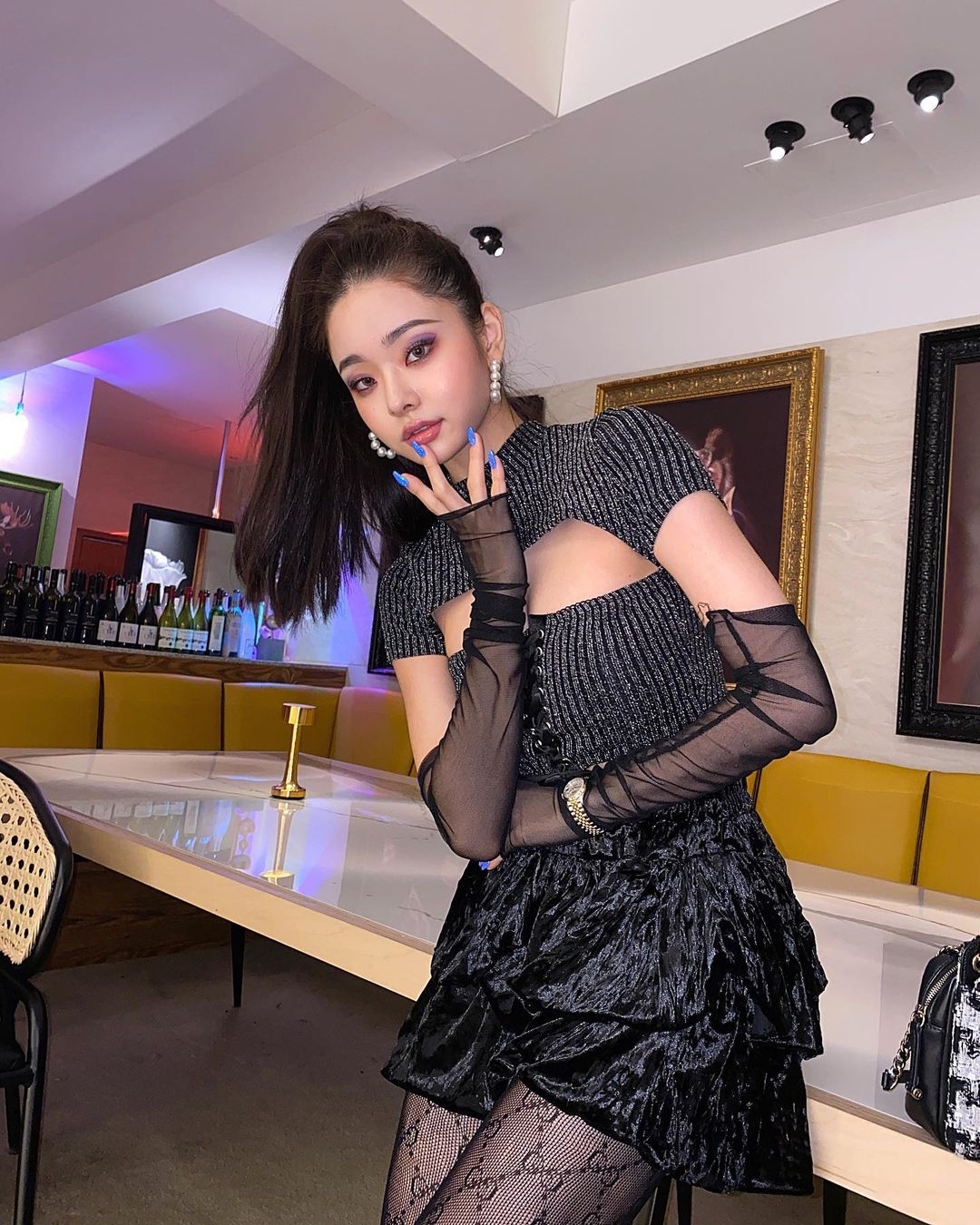 而宋智雅不時也會加入Y2K風格,以短褲或短裙來搭配透膚絲襪,展現出腿部的線條,若隱若現的感覺,性感度馬上大增!