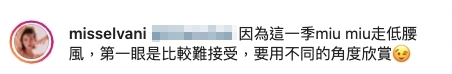另外又有一張相Elva輕輕舉起雙手,疑似是為了展現該品牌的內衣褲,但肉色的內衣又再被網民嘲笑是「阿婆底褲」,大家似乎對她這身造型相當不滿意。但都有網民大讚Elva相當敬業,身材好Fit!但Elva都有在IG大方回應網民的留言,提到雖然這件事服裝第一眼比較難接受,希望網民用不同角度去欣賞;又解釋因為服飾是採用低腰設計,再加上自己的腰本來就好長。