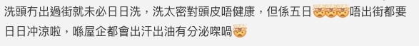 但亦有不少女生留言平反,指出女生洗頭和吹頭所需的時間較長,所以不一定每個女生都會每天洗頭,但五天不洗頭的情況則太極端,最盡只會一至兩天不洗頭,始終頭髮會出油;尤其是現在疫情的關係,外出之後回家洗頭洗澡是基本衞生常識。不知道大家又接受到自己最多幾天不洗頭呢?