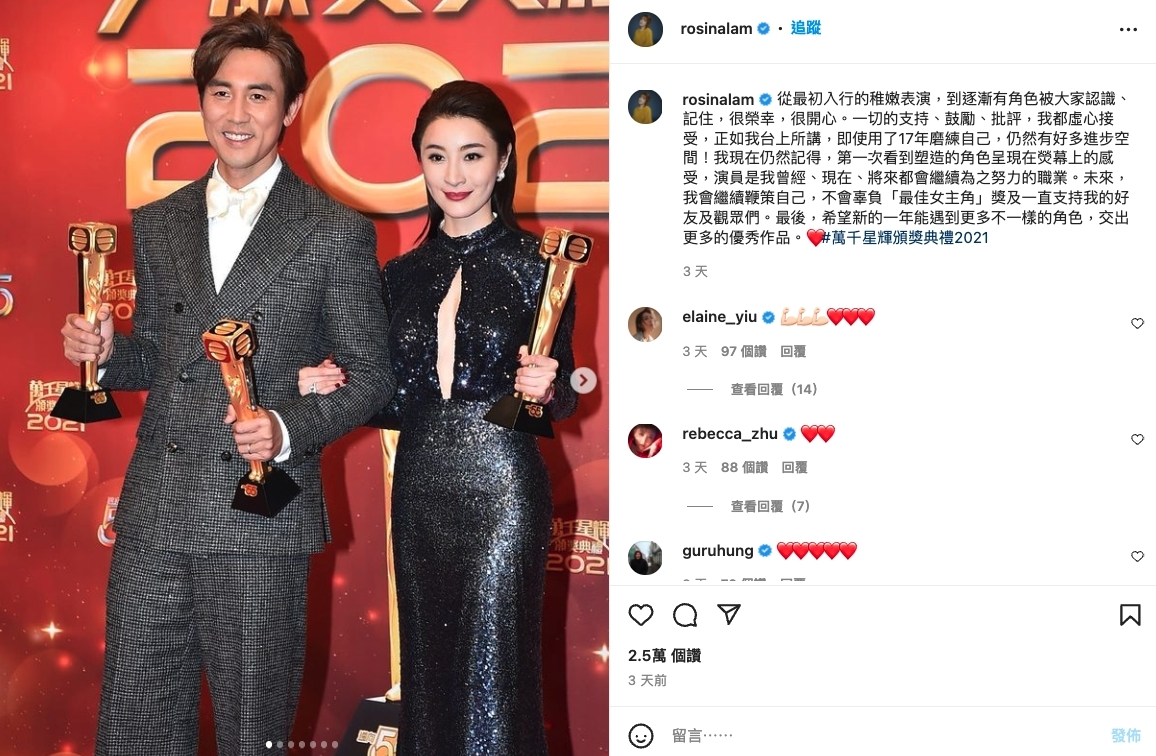 林夏薇發長文分享視后獲獎感言!上傳與鍾嘉欣合照再引負評?被網民發現疑似刪走負評