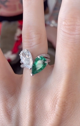 除了「飲血」這對大膽的情侶還有另一項驚人舉動,在Machine Gun Kelly分享的片段中,他提到求婚戒指由他親自設計,戒指由2顆巨大的梨形鑽石及綠寶石結合而成,分別代表著2人的誕生石,不過大家的焦點都落在他描述的細節上,他指戒指的環其實暗藏了倒刺,所以如果女友想脫下來便會非常痛苦,網民知道後都紛紛反對他這個主意,質疑他為甚麼會捨得傷害未婚妻,不過他就表示他認為「愛是痛苦的」,大家聽到之後都大表不解。