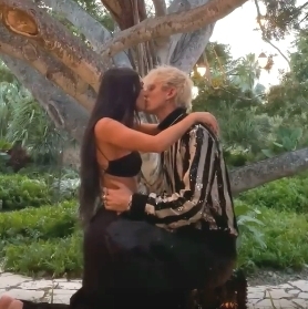 不過外間的質疑無阻他們愛得高調,他們更曾在公開場合舌吻!而在拍拖1年半後Megan Fox 近日宣佈和Machine Gun Kelly已經訂婚,他們又相繼在IG上分享求婚影片,雖然片段中的畫面相當浪漫,只見男方在榕樹下單膝跪地向 Megan Fox求婚,她亦驚喜得掩面而哭之後便和男友擁吻起來,但她的配文卻暗藏驚人細節!