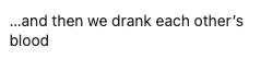Megan Fox 一開始只是在文中描述自己激動的心情及感激對方和她一起「走過地獄」即共渡艱苦的時刻,更表示想和男友「生生世世都在一起」,但去到配文的最後一句,她竟然寫道「我們喝了彼此的血」,雖然未知道她只是在說笑還是他們真的有這樣做,但留言的人都紛紛表示被嚇倒 。
