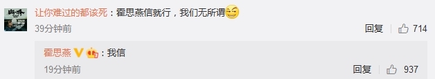 杜江更重申自己從來沒有「寵妻人設」,指自己對太太的感情一直是真實,也是永恆的,一番言論閃爆網民。當中有網民看過杜江的澄清文後留言表示:「霍思燕信就行,我們沒所謂」,結果引來霍思燕霸氣護夫:「我信」,簡單的兩隻字就表達了自己對老公的信任。