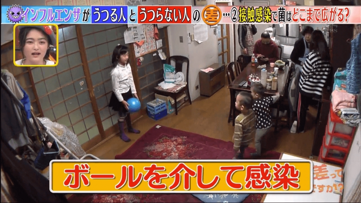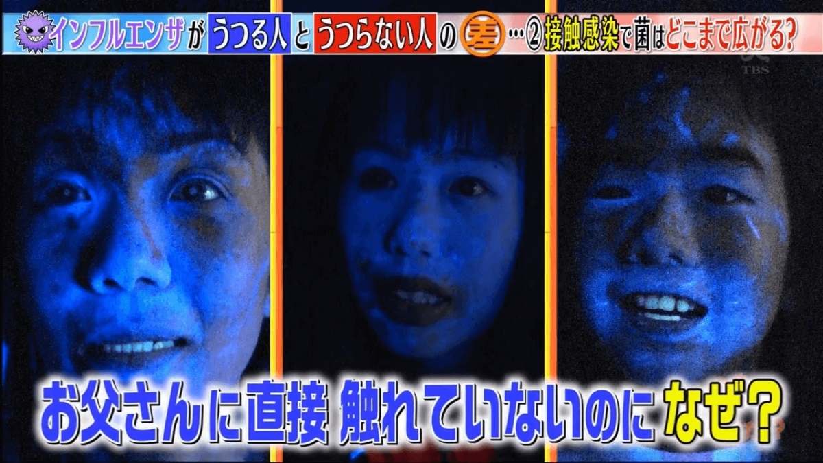 日本節目邀請了一家七口做實驗對象,節目首先將特殊螢光劑抹到爸爸的手上,代表是爸爸把外面的病菌帶回家中,並觀察在兩小時內家人會否受到感染。