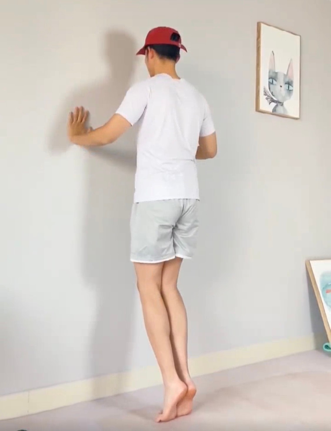 1. 先用雙手扶著牆壁,再將雙腳併攏,並踮起腳尖,站立蹲下20次為一組,每天需要做4組才有效果。大家在做這個動作的時候記得要保持背部挺直,還有一定要將雙腳緊合。