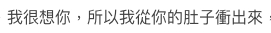 另外女網民指女兒更表示自己是因為太想見到媽媽,才忍不住從「黑黑的地方」裡衝出來,然後被「嚇倒」而放聲大哭,恰好女網民在順產的時候,女兒也是突然衝出,連醫生都差點沒抓住,更因為力道沒有控制好,不小心在她額頭上按了一個很紅的指印,令她哭得很淒慘。