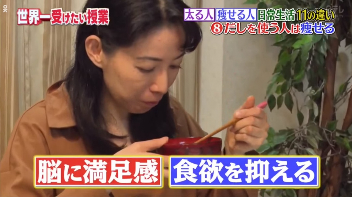 舌頭容易積聚食物殘渣及細菌,影響味蕾去感受味道,會令到食量增加及進食重口味的食物,飲用昆布高湯可以清潔味蕾,壓制食欲。