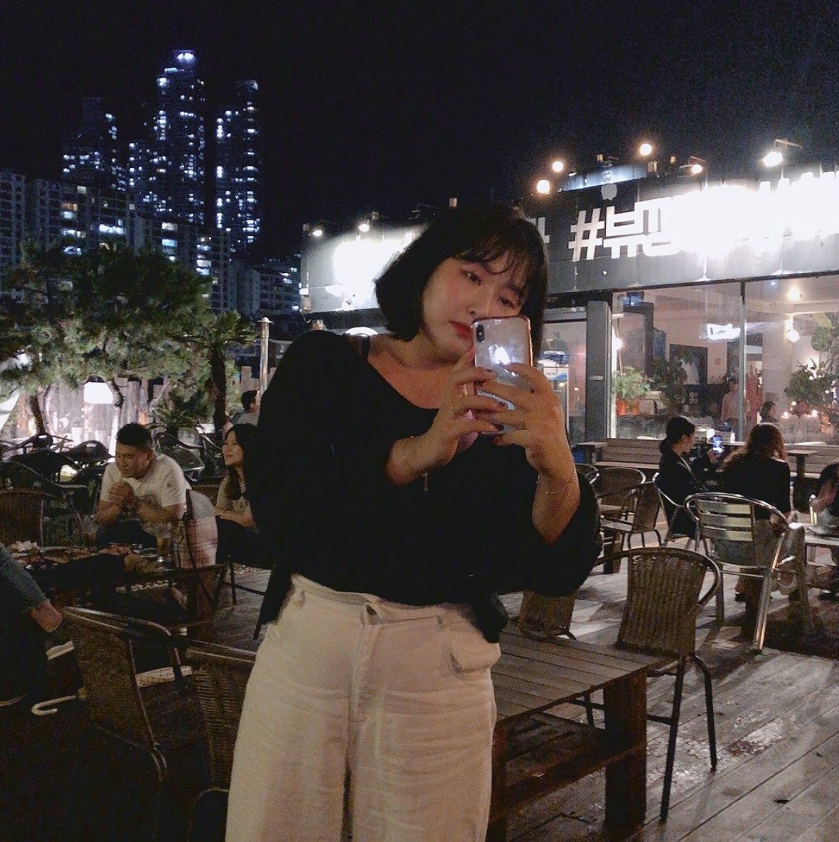 Yunjeong無論穿裙子還是長褲,都會發現她有一個小技巧,就是「攝衫」,會在穿高腰褲及裙款時將上衣攝進去,用高腰褲去突顯腰部的線條,有顯瘦效果。而且高腰褲可以令你雙腿看上去更加長,目測有170cm以上。