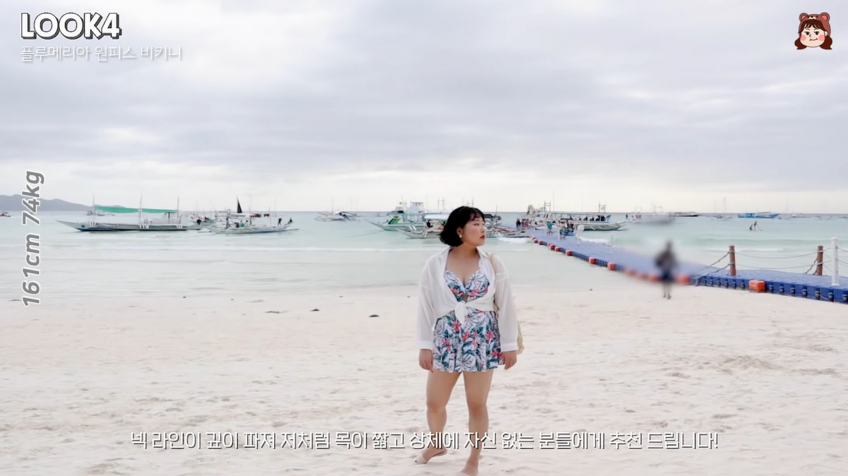 Yunjeong在夏天也會穿泳衣,她會建議肉肉女生穿多裝飾設計的泳衣,荷葉邊可以遮掩手臂、下身的泳褲的交叉設計突顯腰線,又可以加一件薄薄的外套。