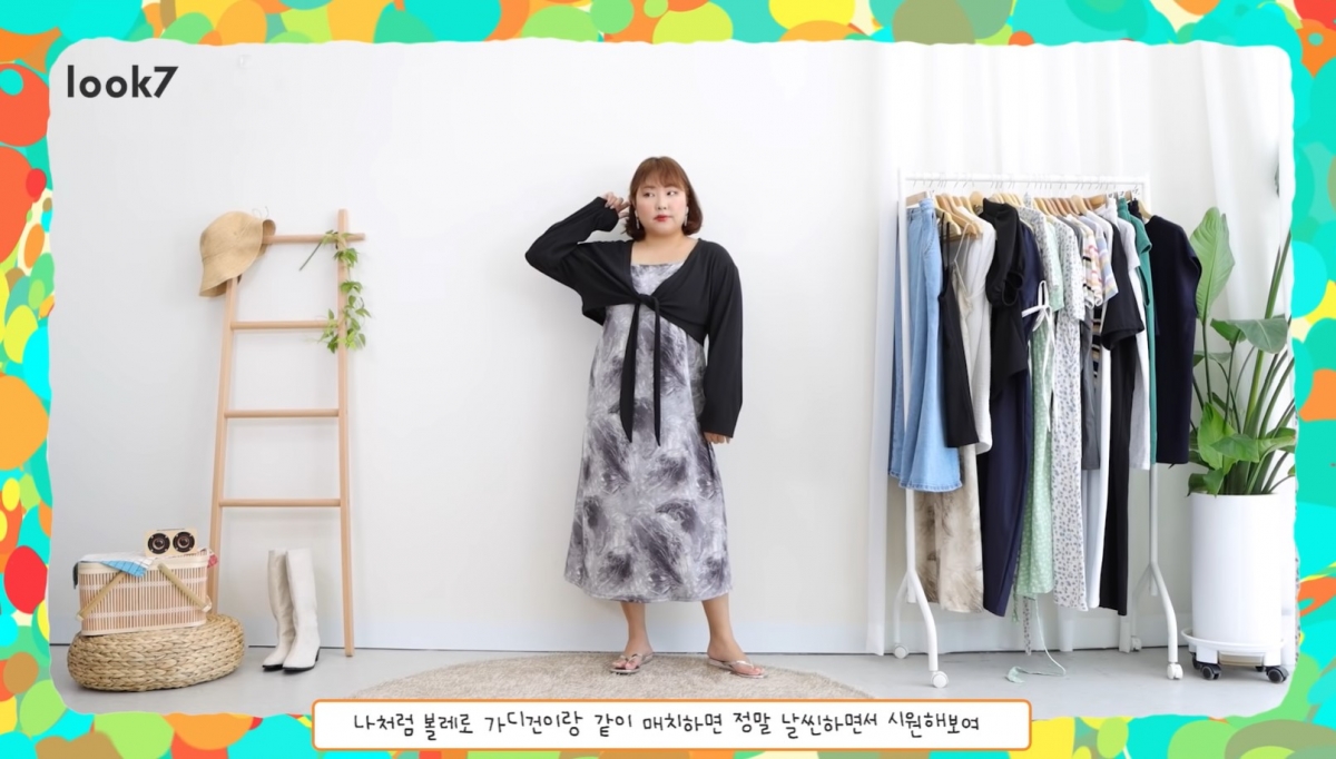 在她最近的影片中,她曾分享過自己穿背心連身裙,她會加一件薄身的小外套去遮蓋肉肉的手臂,在香港出入冷氣地方亦非常適合,她又會利用綁帶設計去突顯腰線。