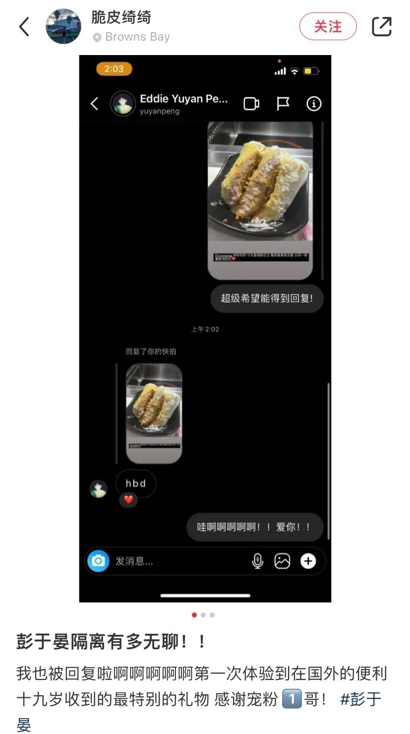 近日有網友在微博整理了彭于晏回覆網民的截圖,原來彭于晏因封城困在家中的日子,居然開始回覆網民的私信。當中有網民晒自己的19歲生日蛋糕,並tag了男神的IG帳號,竟然收到彭于晏的生日祝福,令到網民開心地表示是自己收到最特別的生日禮物!