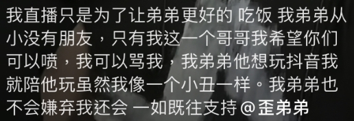 至於「冷志龍」本人則已承認自己平時是穿了「肌肉裝」和利用濾鏡成功「改造」自己, 不過努力拍片都只是想讓親弟弟過上更好的生活,而且弟弟平時沒有太多朋友,只愛玩抖音,開這個抖音帳號唱歌跳舞都是為了哄弟弟高興,希望大家高抬貴手,繼續支持他。