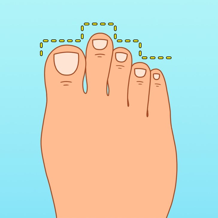 埃及腳是最普遍的腳趾型態,大腳趾是最長,其他腳趾就會形成45°的角度,原來這種人是天生富貴命,容易聚財。他們性格特徵是較神秘,又有內斂的個性,不喜歡將自己的事告訴別人,傾向於隱藏秘密。