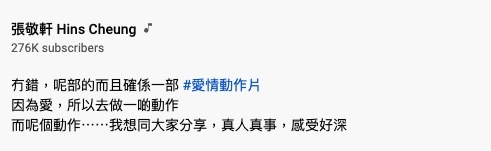 張敬軒更指劇情是朋友的真人真事改編,還指當時看著友人為搏太太一笑,不惜任何代價拿到MIRROR海報的動作「超有愛」~各位前夫看微電影的時候,又會不會很有同感呢?