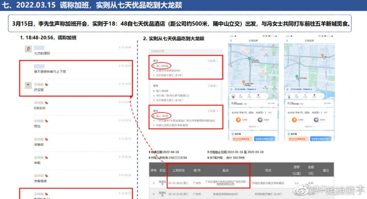 接著女生每項「罪名」都配以詳細證據,有照片、收據記錄、通話記錄等,還註明了所有出處,堪比畢業論文啊!這名女友非常厲害,她不僅從男方的傳送記錄裡找到照片等證據,還因為通訊程式中有步數排行版,記錄每個人每天走了多少步,從而揭發兩人出差偷情當天步數幾乎一樣!