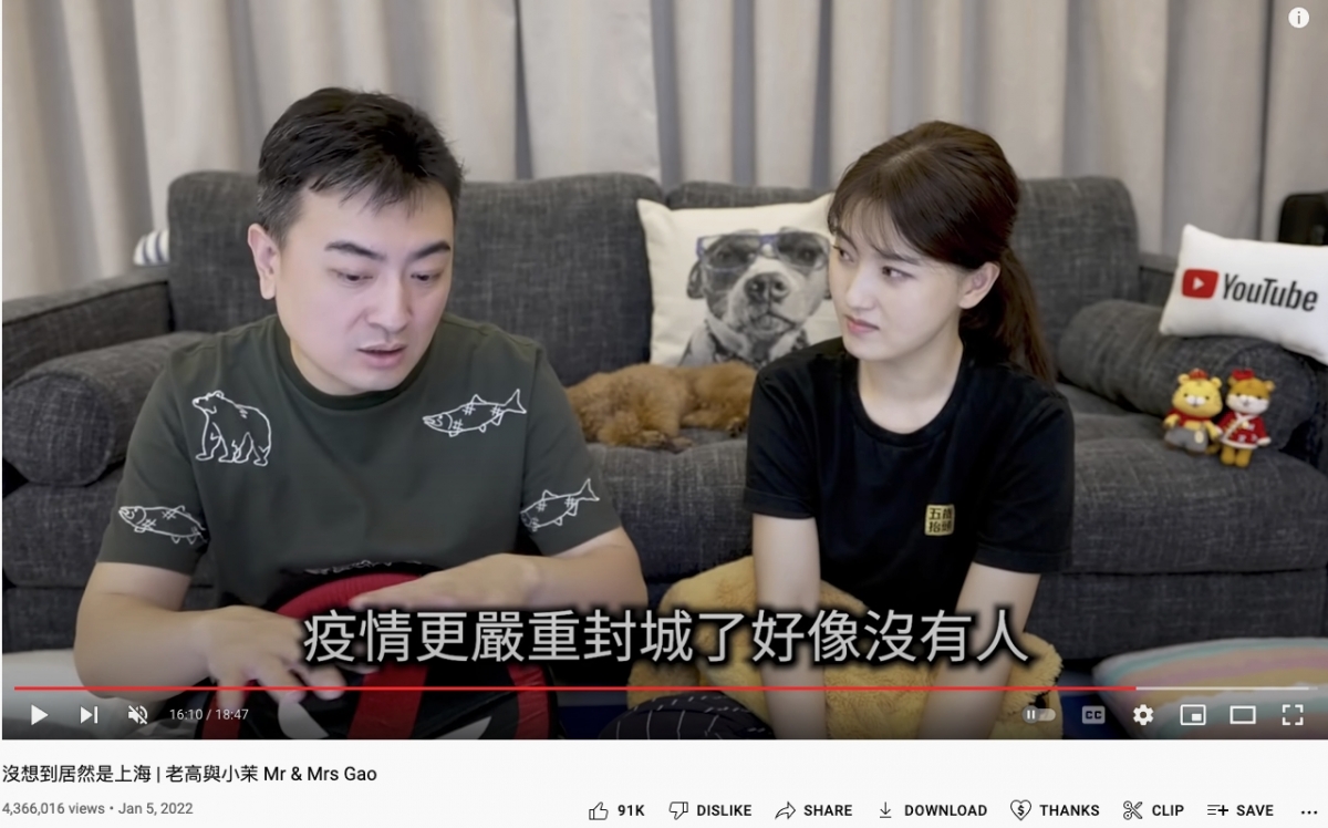 人氣「夫妻檔」Youtuber「老高與小茉」以探討各種神秘現象為主題,內容有趣而備受網民追捧,近日他們一條在2022年年初發佈的影片更再度成熱議,原因是這條片提到一個30年前的「預言」,被網民發現竟疑似是在描述因疫情而「封城」的上海?