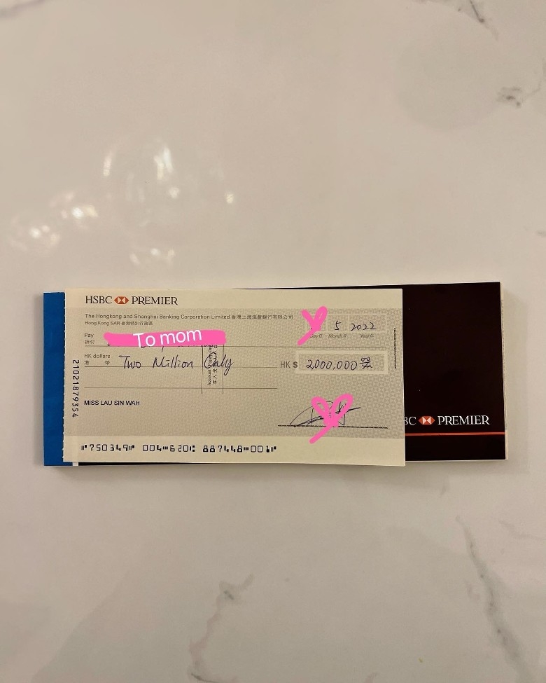 豪晒200萬支票