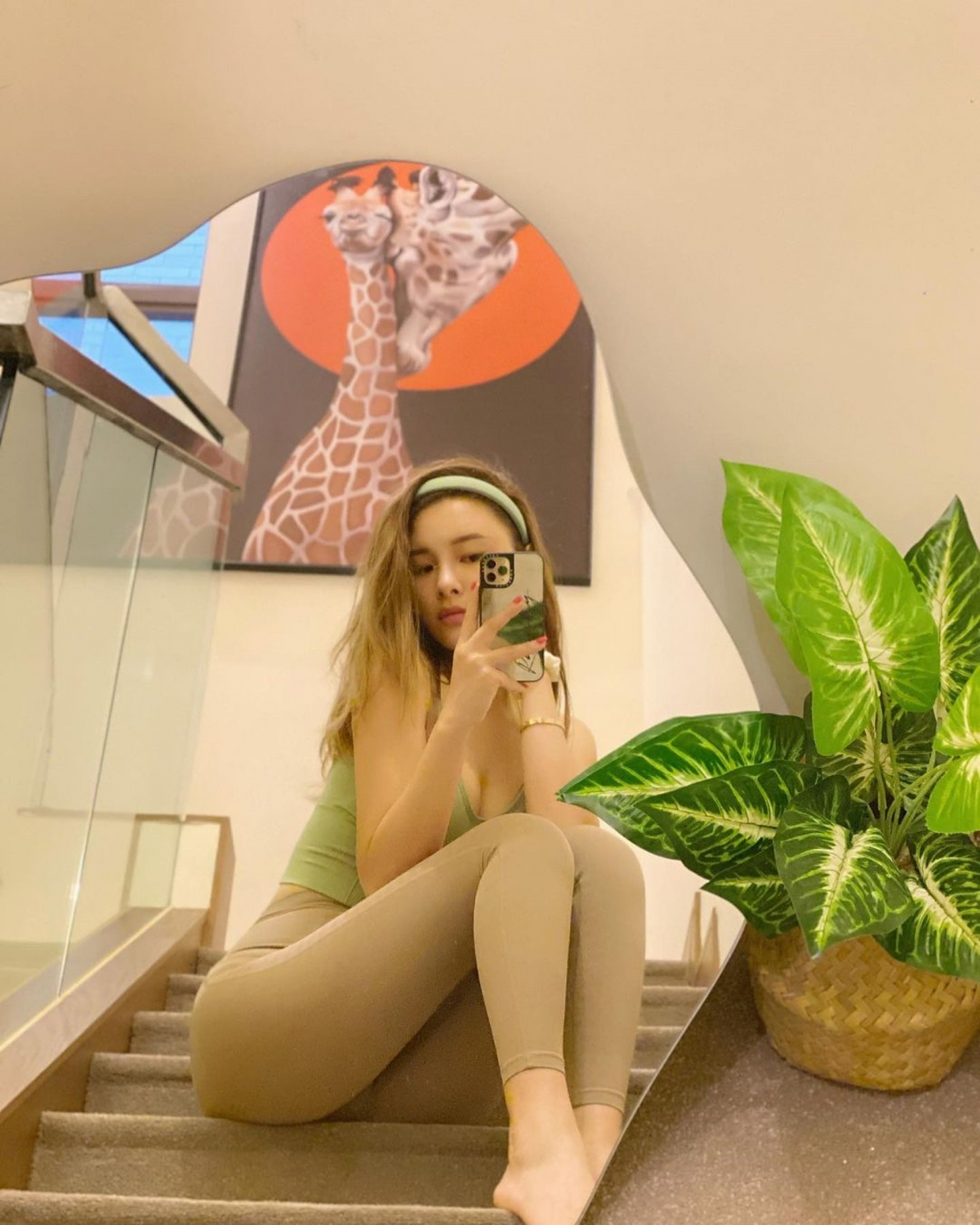 而且家中的樓梯位及露台亦成為她的打卡位,又放置了不少畫作及植物做裝飾。