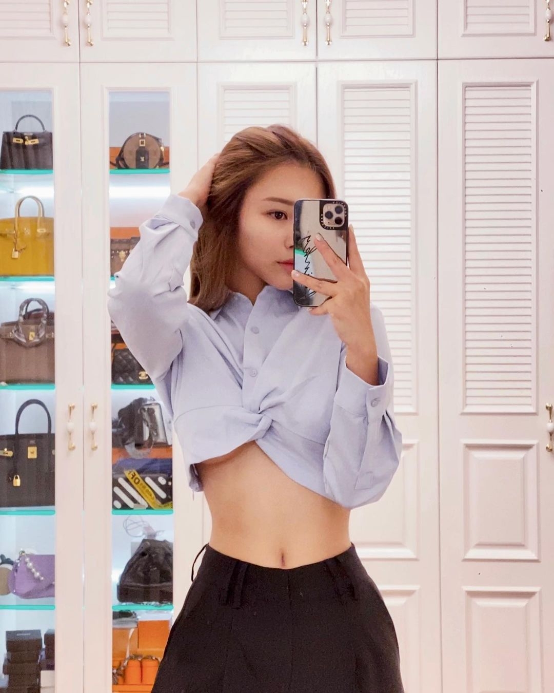 但說到獨立屋企最吸睛的地方,一定是蔚雨芯的主人房連大型衣帽間,當中一個巨型名牌手袋櫃就成為焦點,裏面放了數個Hermès手袋,還有其他Chanel、LV及Gucci等手袋,價值過百萬。