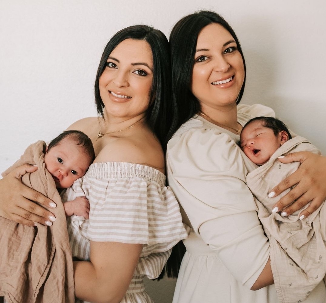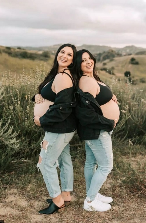 來自美國加州的Jill Justiniani及Erin Cheplak今年30歲,是一對同卵雙胞胎,兩人雖然結婚時間相差一年,但就計劃要同時懷孕,讓孩子可以一起長大。兩姐妹在懷孕過程中又可以互相照應對方,一起體驗生育的辛酸。