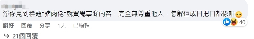 不少街市型男威威的粉絲看到專欄後,紛紛留言覺得「豬肉佬」這個稱呼不尊重人,更指森美在文中以「東西」代指威威。