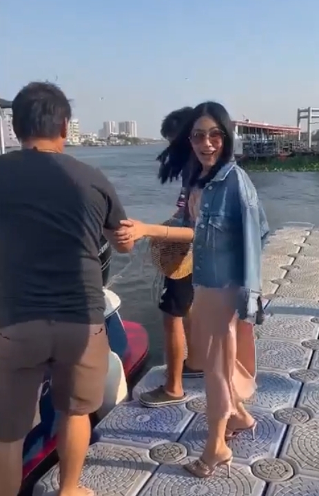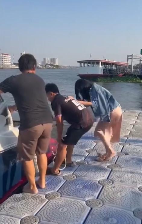 Tangmo的FB先是Po出事發當天Tangmo上船的照片,可以看得出來當天浪大船搖晃得厲害,而且Tangmo就算是在岸上,也必須要兩個男人攙扶才能登船。因此嫌疑人指Tangmo是在船邊如廁掉進河中的供詞並不可信,Tangmo根本就無法靠著自己的力量在船上站穩!Po片者還配文:「船尾沒辦法去廁所,連船停着浪打過來的時候,我都要扶着兩個男生的手臂才能站起來,我沒辦法說話但也別污衊我啊,親愛的朋友!」看上去像是Tangmo親自發文,令不少人感到毛骨悚然。