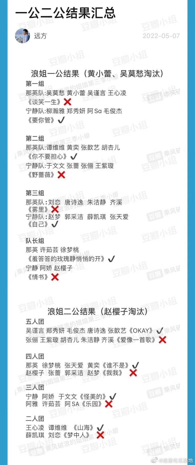 由於節目《乘風破浪》是先錄製再播出的形式,近日有消息指已經完成了首三場公演比賽錄製,有進場參與拍攝的觀眾也將結果以文字形式Po了出來!
