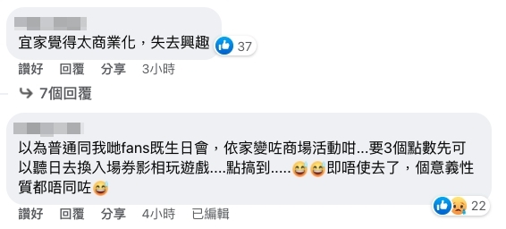 有粉絲認為版主一開始提議舉行生日活動,單純是想為阿威送上生日祝福,結果生日活動變成與商場合作,又要集齊點數才可以合照,變成商業化的活動,認為去街市找阿威才有更親近的感覺。
