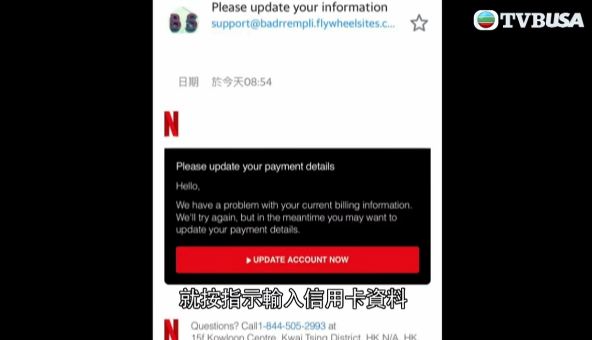 相信不少人都有使用過Netflix,近日有港女向《東張西望》求助,指自己續費卻不小心墮入騙局?原來事主一向有用Netflix,突然收到一封疑似Netflix發出的Email,要求她重新輸入付款資料,包括信用卡的詳細資料,並且輸入驗證碼完成付款。