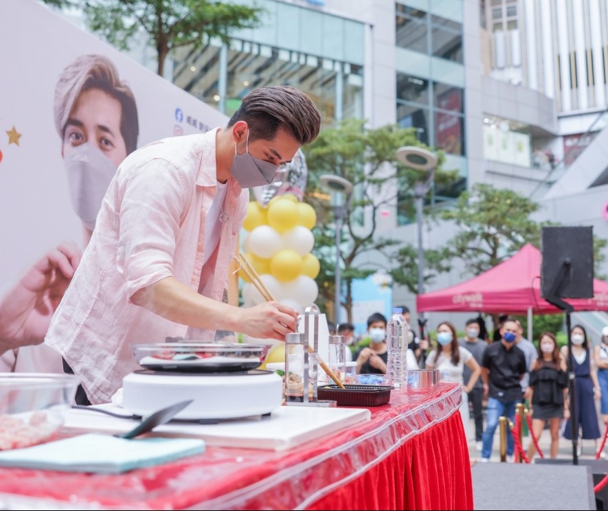 威威上台與Fans大玩遊戲,施展「電眼」,又即場表演「煎愛心豬扒」。