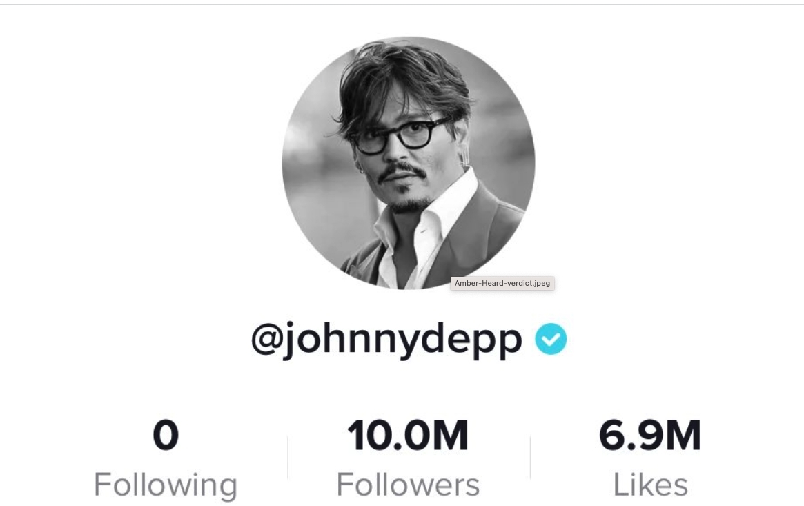 而Johnny在贏得官司後連日內風騷與各方好友見面,亦不忘感謝網民及粉絲對他的支持,開設了TikTok帳號「johnnydepp」作為新的宣傳渠道,並在自我簡介中寫上「Occasional Thespian」,解釋是「不定期的演員」,繼續一貫瀟灑的作風,網民就猜測他是想演藝及歌唱事業都並行。他的帳號開通兩天已有逾1000萬粉絲追蹤。