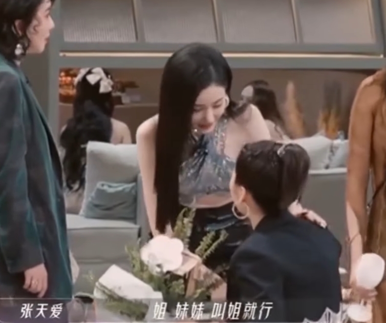 她在節目中更遇到另一位選手1990年出生的徐夢桃,徐夢桃問應該叫她姐姐還是妹妹,張天愛頓時相當尷尬,只好開玩笑小聲湊到對方耳邊說:「是這麼回事,都是姐妹,叫姐就好」