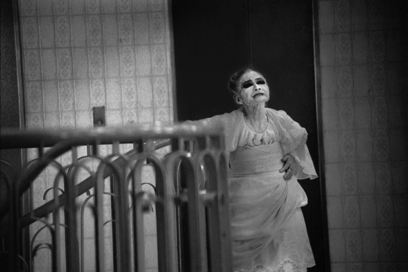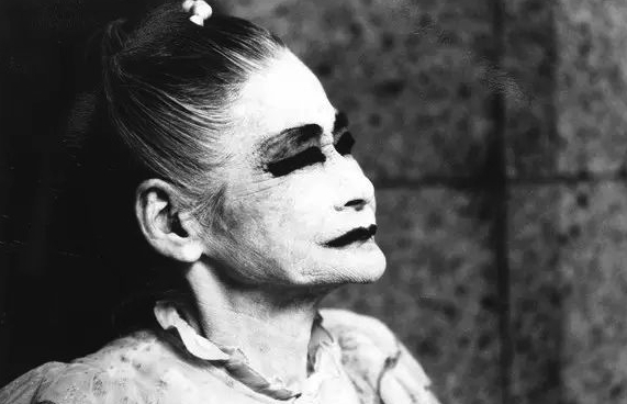 直到1951年,美國士兵被要求回國,瑪麗就從此改變了她的打扮。她將臉塗上厚厚的化妝品,白得猶如塗上石膏,眼睛周圍也塗得黑黑,唇膏卻是鮮豔的大紅色,長長穿著純白色的蕾絲裙、手套,詭異且引人注目。
