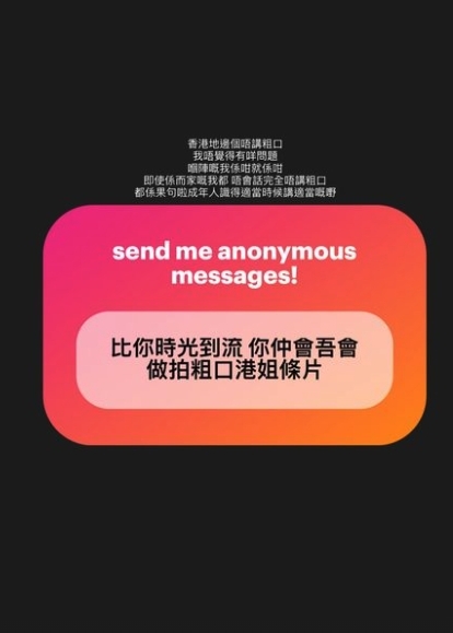 近日2022年香港小姐開始選舉,2021年度入到20強後止步的梁允瑜在IG與網友大玩Q&A!有網友提及她當年被爆食住魚蛋爆粗,因此被外界封為「爆粗港姐」一事,她則大方回答:「香港地邊個唔講粗口」