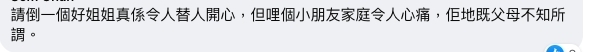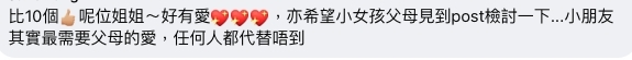 網友們聽完故事後,一方面很生氣小女孩不負責任的雙親,另一方面也因為姐姐的無私奉獻而感到很感動!有網友說:「大人自己嘅問題就係咁影嚮到個小朋友....小朋友係無辜嘅....好彩遇到個好姐姐...希望佢一直幸運... 長大後做個堅強嘅人」不少人稱該名外傭姐姐是「人間天使」,幸好小女孩能遇到她。
