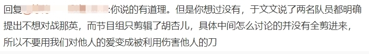 不過也有部分網民質疑是節目的劇本,因為播出的內容中,並沒有整段團隊討論的過程,主要只播出胡杏兒要求不與那英對決的部分。網民表示團中其他人應該也有說過話,質疑是否故意剪輯,或者是根本有劇本,令胡杏兒成為「罪人」。