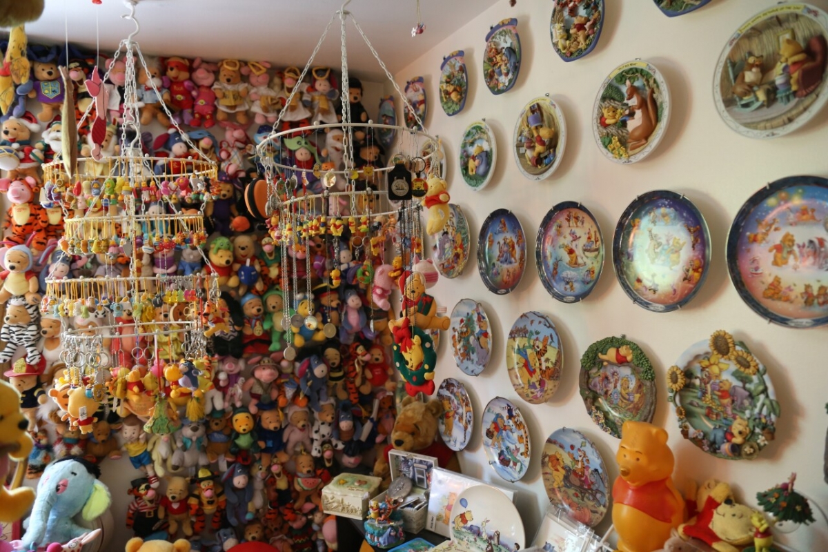 全屋已經到處擺滿了不同的維尼週邊,其中四間房間更是專門用來收藏它們,根本就是一個小型的維尼博物館吧!場面超壯觀!