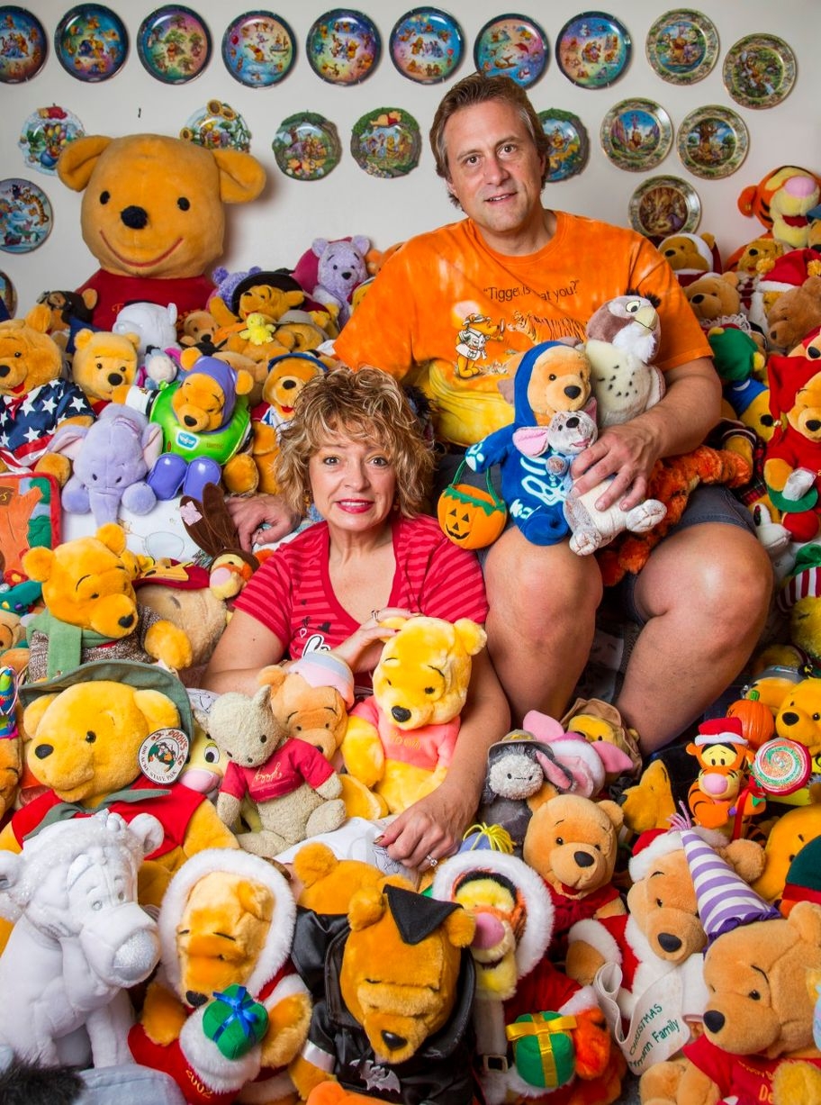 光看相片已經完全感受到Deb對維尼的愛意有多深!而她的老公Gary 也十分尊重對方的興趣,並表示支持她繼續收集,愛屋及烏!