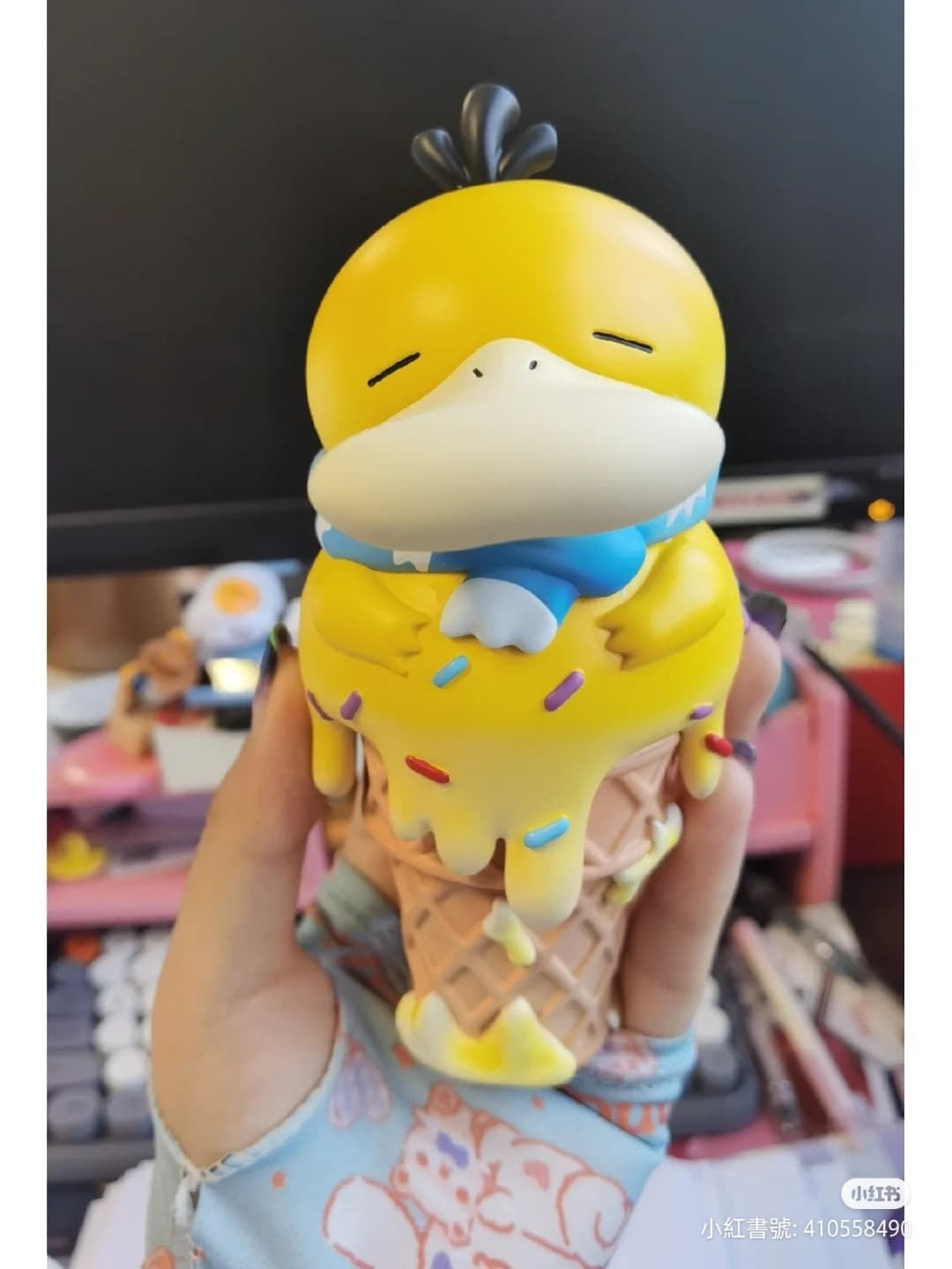 除了比卡超之外,還有其他寵物小精靈造型的雪糕,這個系列的第二彈就是「傻鴨雪糕」,可愛地呈現出傻鴨經典的三條頭毛和肥美的身形,跟甜筒完美地融合在一起,萌爆全網~!