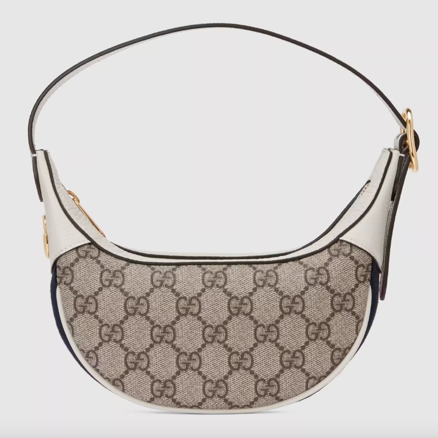 Gucci這款Ophidia 新月形的迷你袋,以品牌經典的GG Supreme帆布製成,再配以皮革飾邊,側面亦有個金屬雙G Logo,有質感之餘又帶點復古感~
