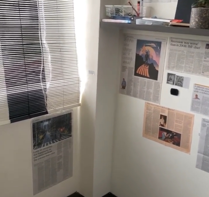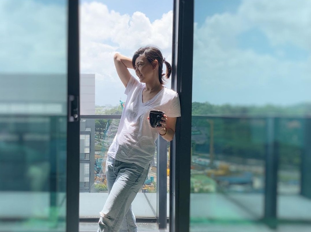 孫燕姿家的客廳位置有一片落地玻璃,地下則是水泥地,搭配白色的毯子,另一張相,可見家裏還有木紋地板,也有和貼滿英文報紙的露台,展現工業風之餘,還流露着文青、溫暖的氣息。