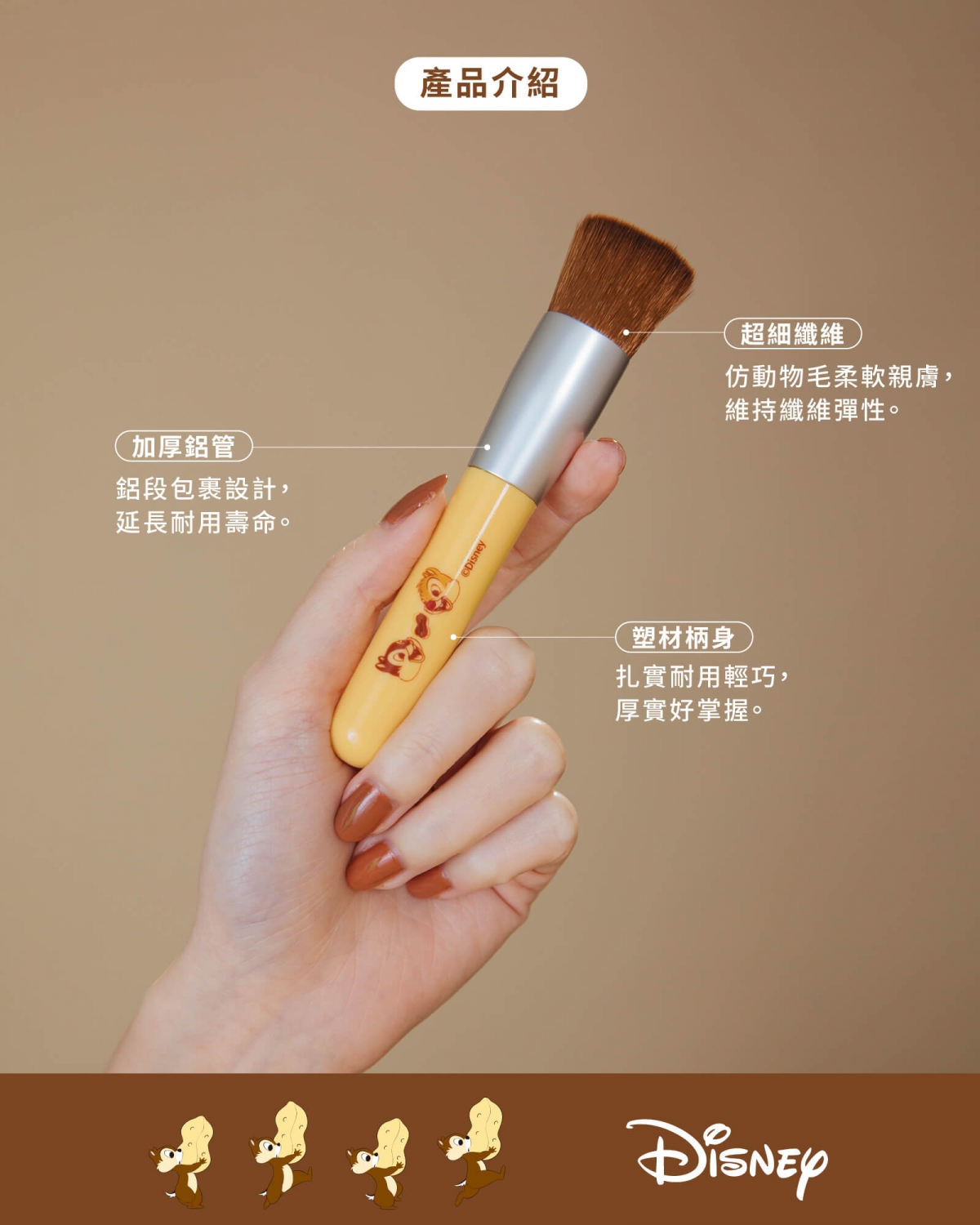 嘩!可愛到無法抵抗!粉底刷的掃柄刻上了鋼牙與大鼻的圖案,可愛度絕對是100分,令你想馬上尖叫搶著要!以後每天化妝時,當你一看到這個超可愛的鋼牙與大鼻粉底刷,心情一定會非常美好~